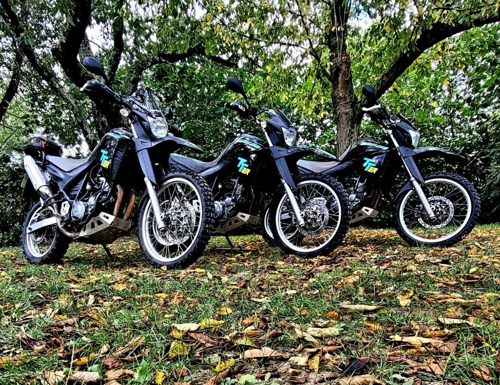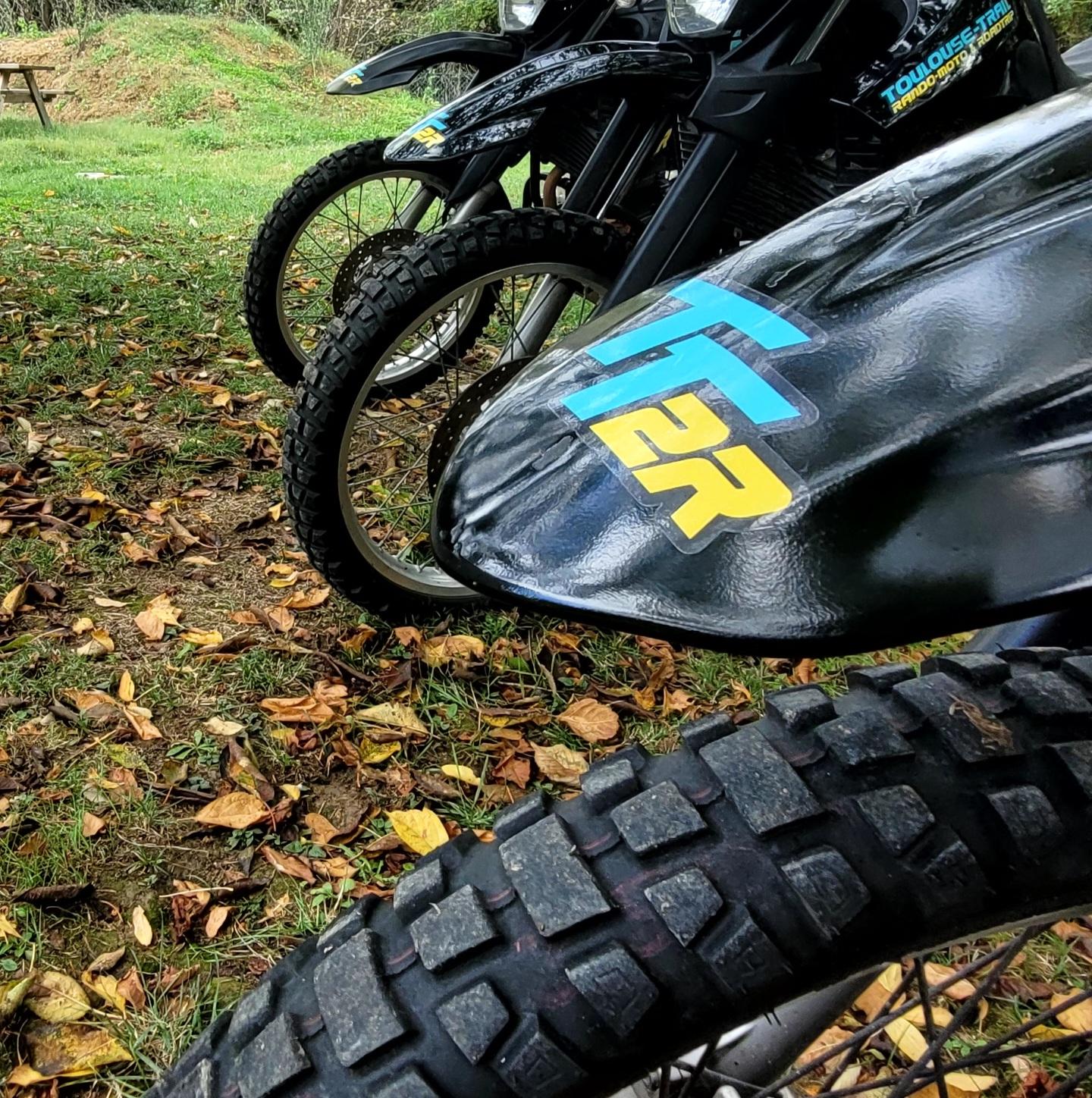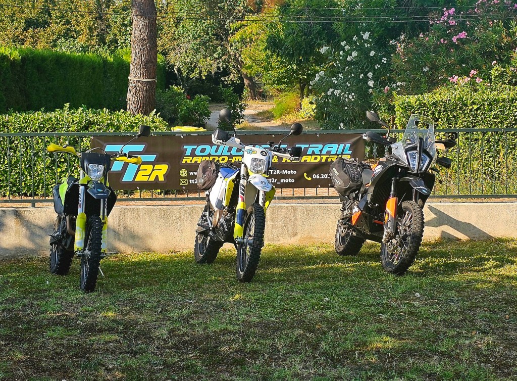 Trois motos identiques (YAMAHA 660 XTR), une Husqvarna 250 FE, une Husqvarna 701 enduro * et une KTM 790 Adventure *. * MOTO HAUT DE GAMME : + 25€ par 1/2 journée + 50€ par journée